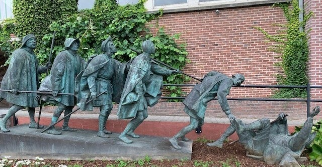 beeld van de Zwarte Graaf aan het kasteel van Bovelingen.