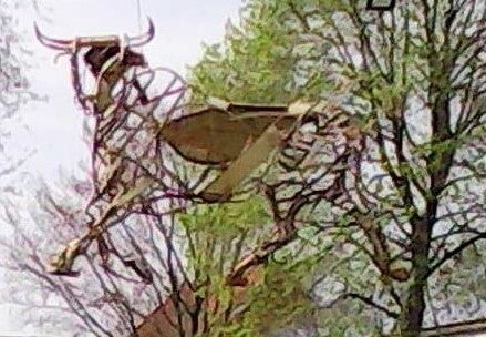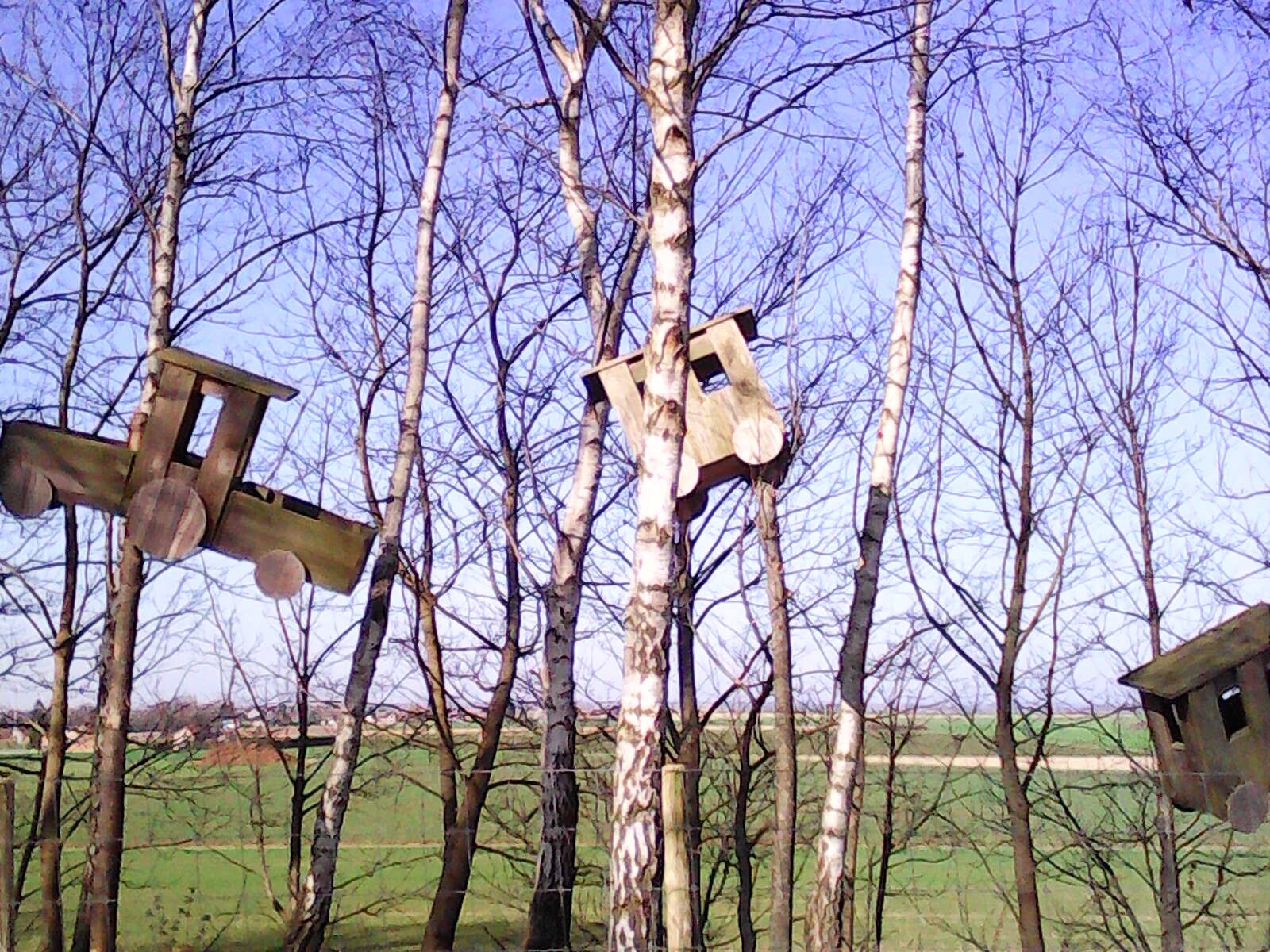 natuurlijke kunst: een speeltuin voor druïdes in Bommershoven. Je moet goed kijken om te zien dat het groen in de bomen geen bladeren van de bomen zijn maar maretakken